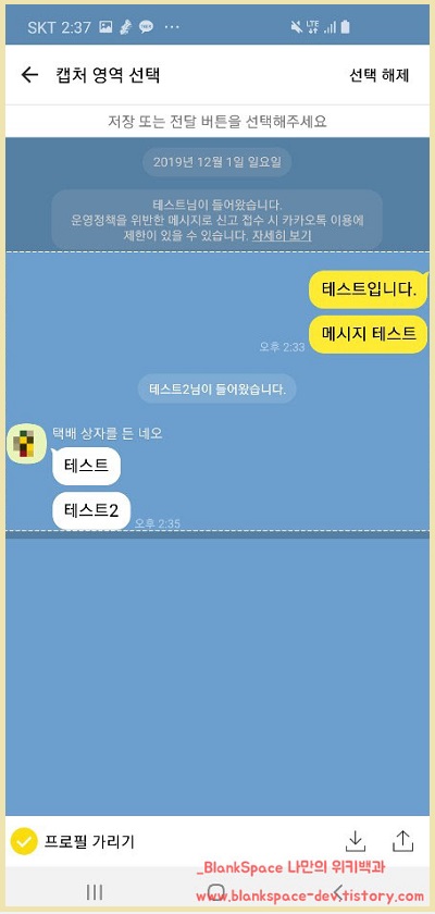 아래처럼 변했을 텐데, 대화 내용을 캡처하고자 하는 시작과 끝 부분을 선택해주세요.