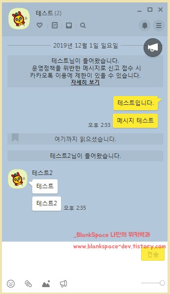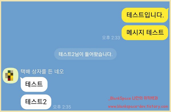 저는 아래처럼 대화창을 하나 만들어서 이미지를 준비하였습니다. 이 글을 보시는 분은 일반 채팅창에서 똑같이 따라 하시면 되겠습니다.