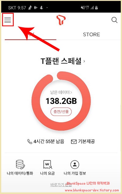아래와 같이 화면이 표시되시나요? 휴대폰 데이터 및 요금 관련 내용들이 나올 거예요.