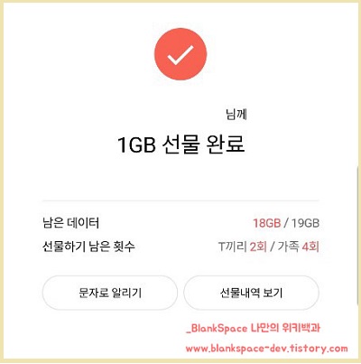 그럼 아래처럼 데이터를 선물했다는 문구가 나옵니다.
