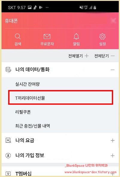 이번 포스팅은 SKT 가입자에게만 해당하는 내용이므로, 다른 통신사에서 데이터를 전달하는 방법을 찾는 분은 다른 글을 참고하시기 바랍니다.
