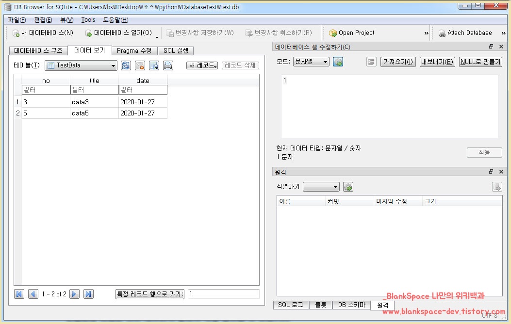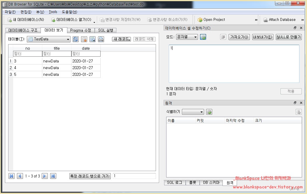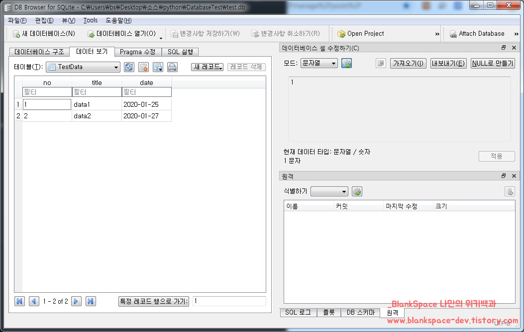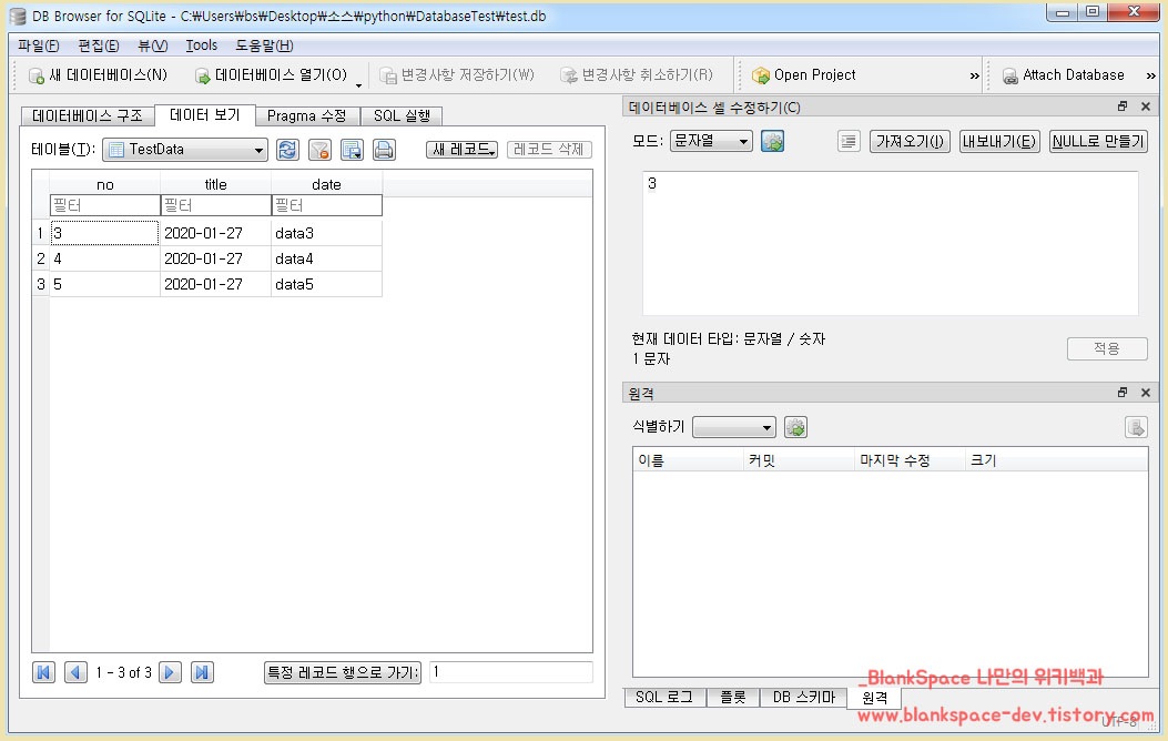 | 파이썬 SQLite 데이터베이스를 사용해보자. (create/drop) (0) | 2020.01.27 |