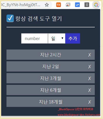 먼저, 항상 검색 도구 열기는 구글에서 검색하였을 때에 도구 버튼을 항상 열 것인가를 설정합니다.