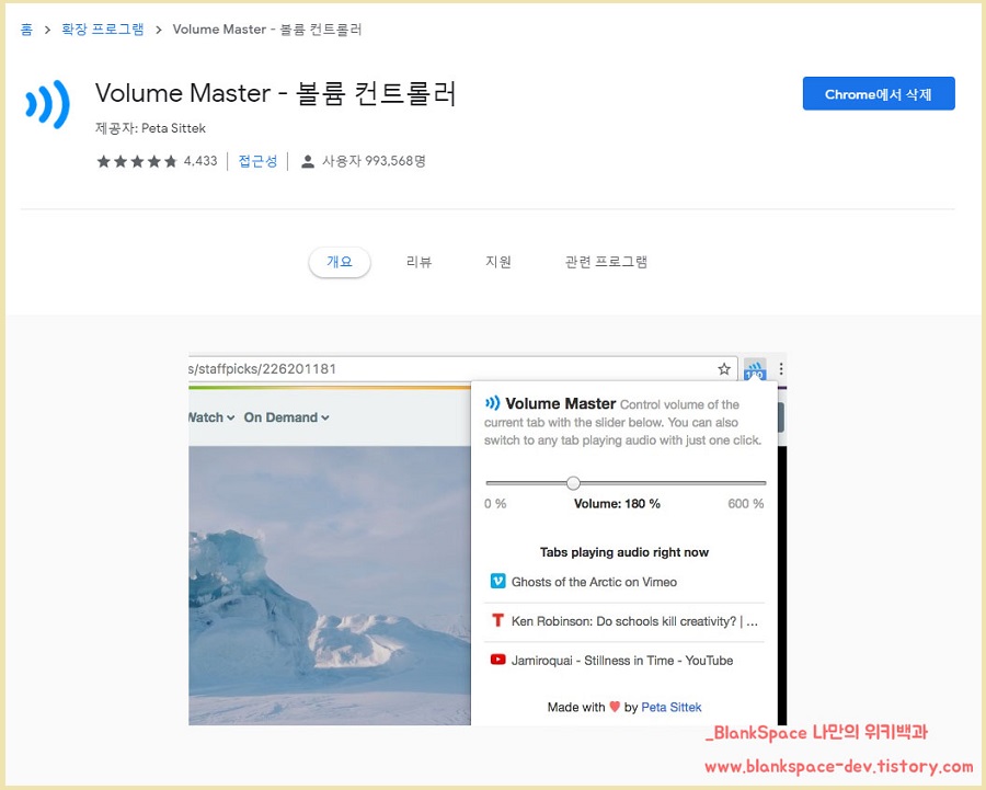 바로, Volume Master - 볼륨 컨트롤러 입니다. 이번 포스팅에서는 이 확장 프로그램에 대해서 자세하게 설명하도록 하겠습니다.