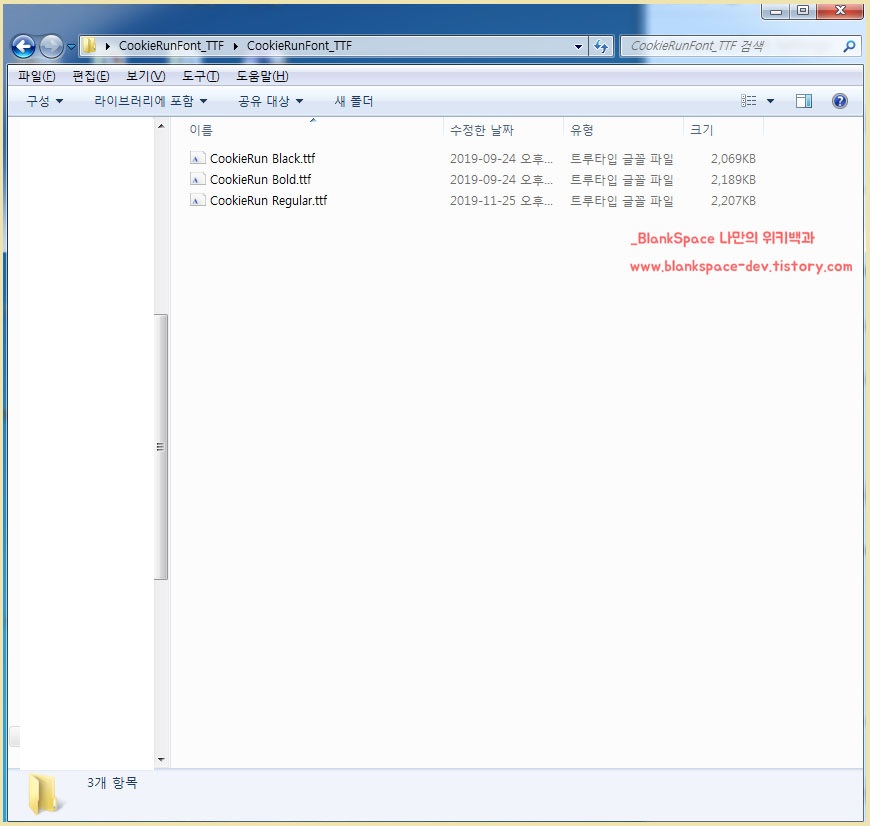 이제, 사용할 글꼴을 설치하도록 하겠습니다. 저는 쿠키런에서 제공하는 글꼴을 사용하도록 하겠습니다.