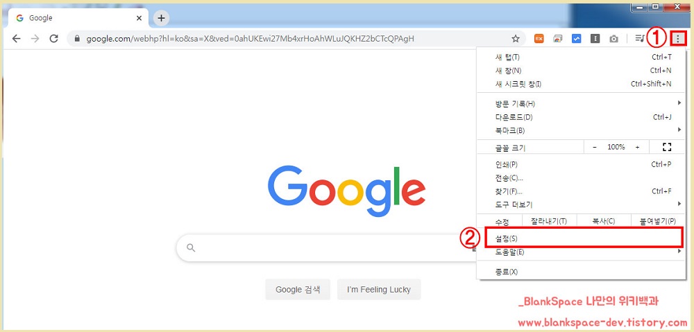 설정 부분을 누르면, 크롬 브라우저의 설정 창으로 이동합니다.