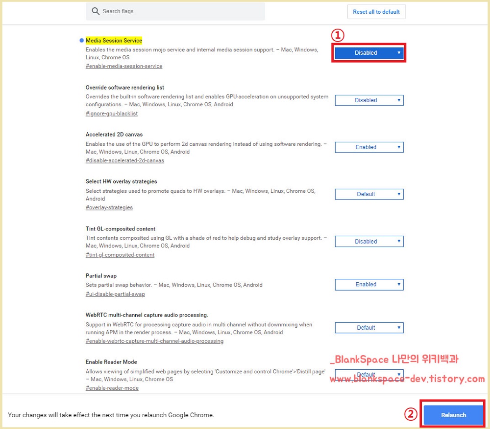 Relaunch 버튼을 누르시면, 크롬 브라우저가 종료될 거에요. 다시 크롬 브라우저를 실행하시면 됩니다.