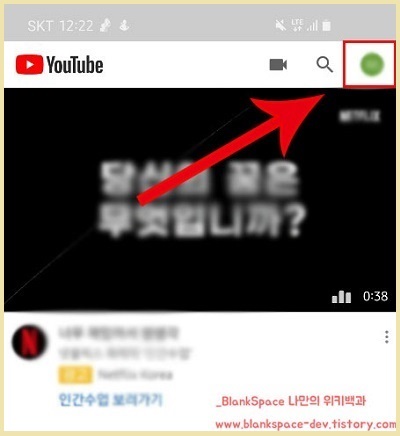 먼저, 유튜브 앱을 실행하세요. 그럼, 아래처럼 메인 화면이 보이실거에요.