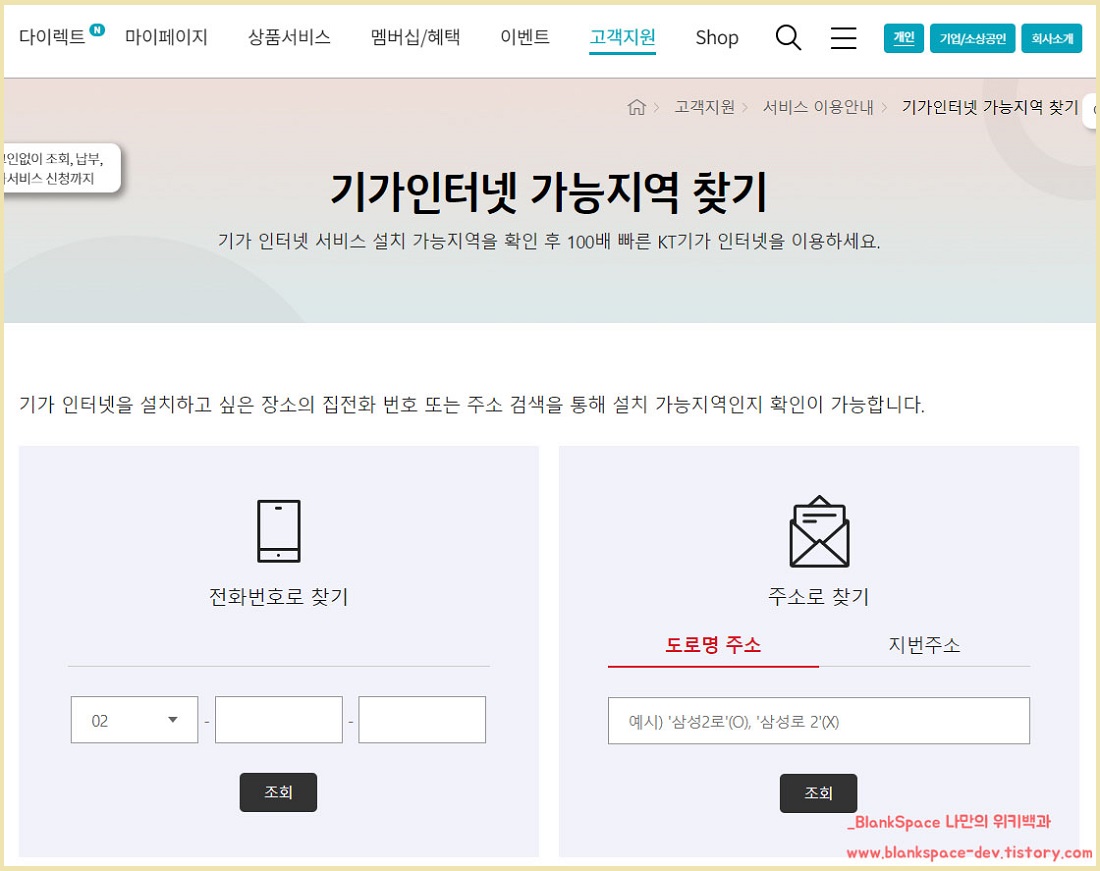 # KT 인터넷 설치 가능 지역 확인 방법
