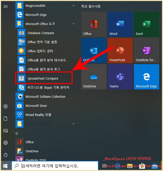 일단, Spreadsheet Compare 프로그램을 실행해야 합니다. 이 프로그램은 엑셀 안에 있는 것은 아닙니다.