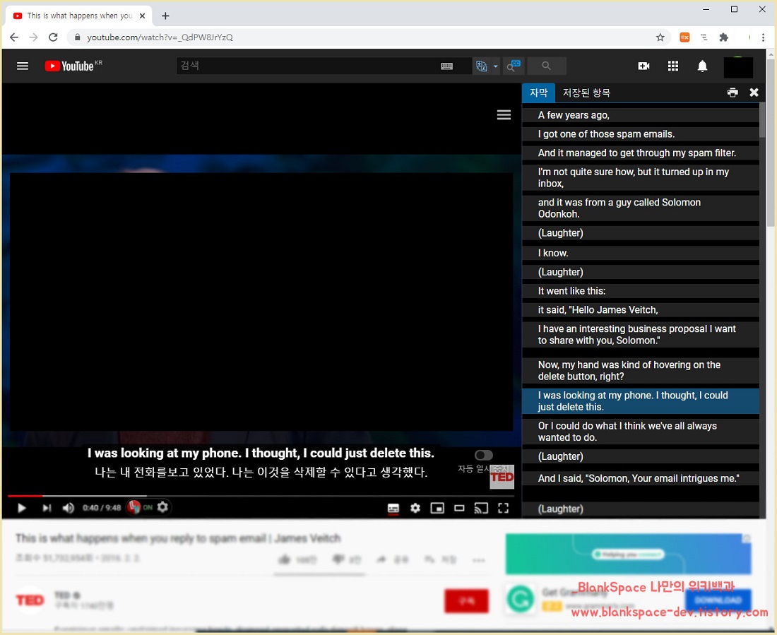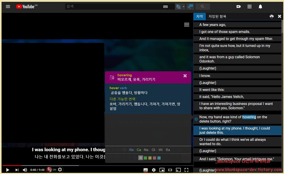위에서 Language Learning with Youtube를 설치하였다면, 이제 무슨 기능이 있는지 확인해보도록 하겠습니다.
