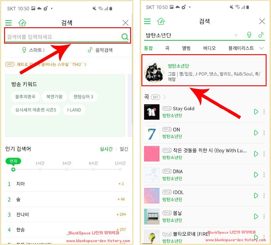 저는 방탄소년단으로 진행할 것이므로, 아래처럼 방탄소년단을 검색해보았습니다.