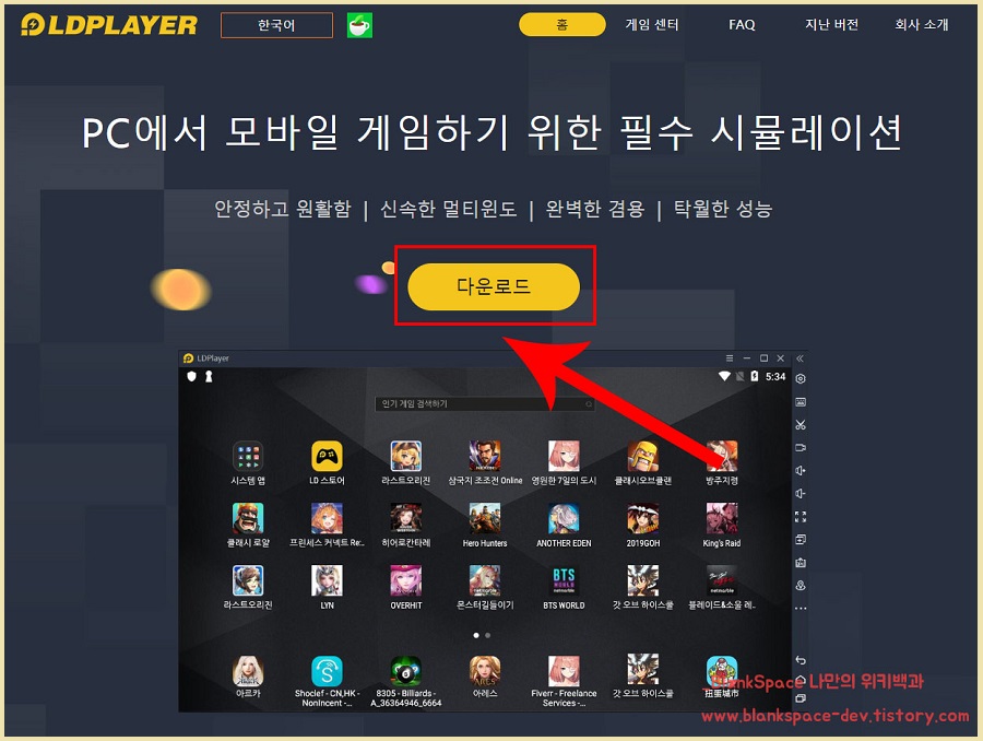 일단, 컴퓨터에서 모바일 게임을 즐기기 위해서는 에뮬레이터를 다운로드 해야합니다. 제가 사용하려는 앱 플레이어는 LD플레이어(LDPlayer) 라는 것입니다.