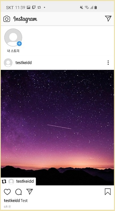 첫 번째 버튼 - 자신의 인스타그램에 리포스트하는 기능.