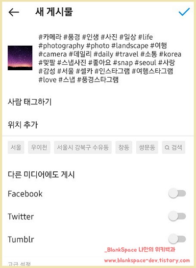 이제 직접 많이 사용하는 해시 태그를 찾아서 사용해보시기 바랍니다!