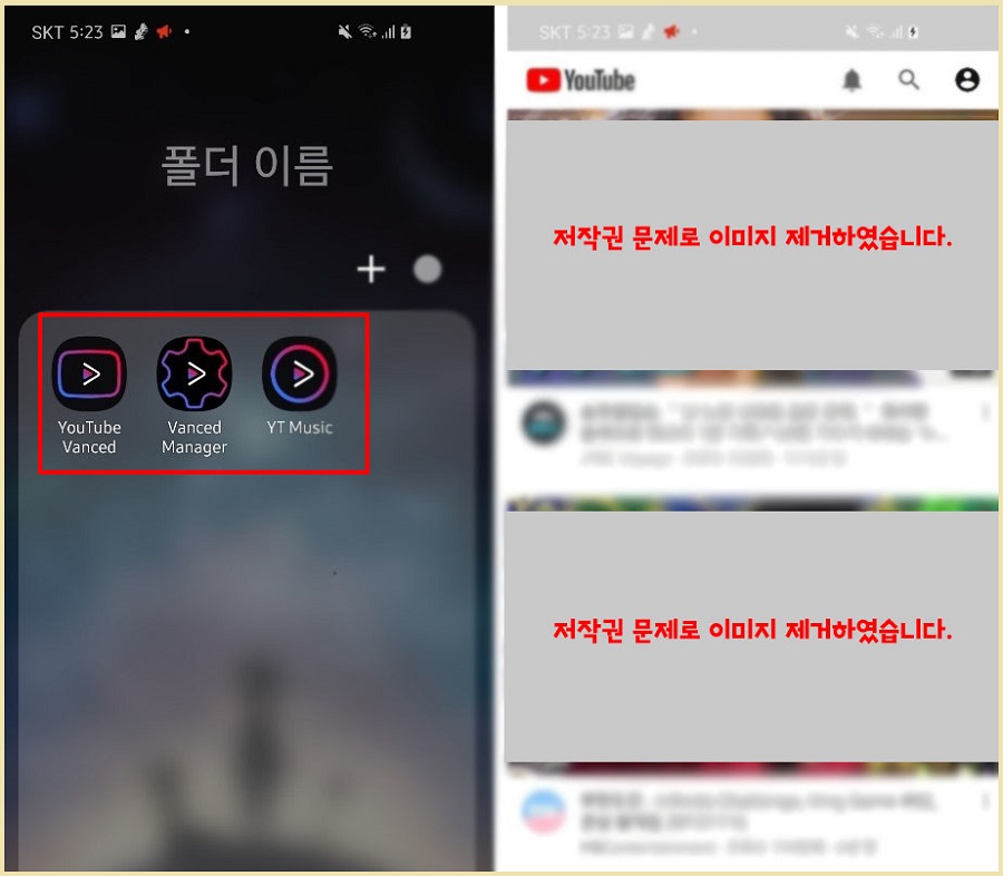설치가 완료되셨다면, 오른쪽 이미지처럼 YOUTUBE VANCED 를 설치해주세요.