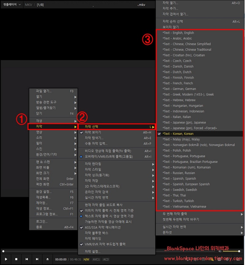 # 다음 팟플레이어에서 영상의 나라별 자막 변경하는 방법