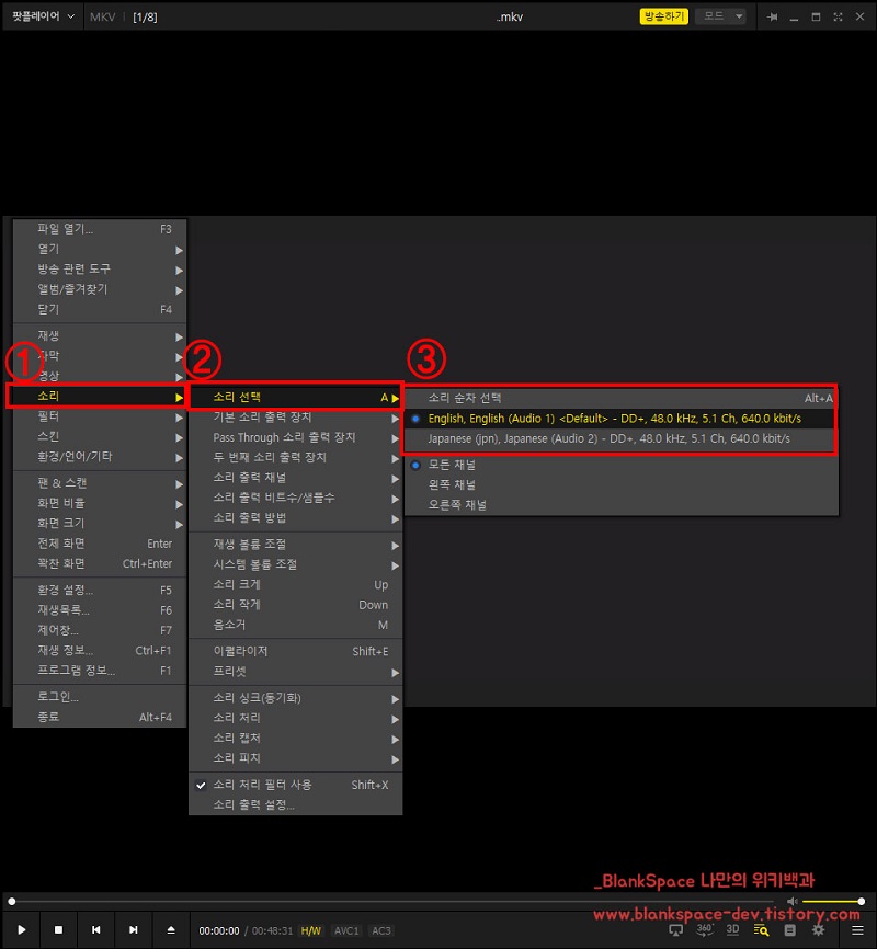 # 다음 팟플레이어에서 영상의 나라별 음성 변경하는 방법