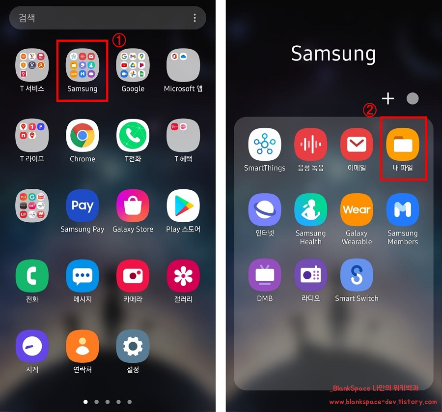 이미지 순서대로 내 파일 앱을 선택하시면 됩니다. 아래 앱을 찾지 못하겠다면, 검색을 이용하시면 됩니다.