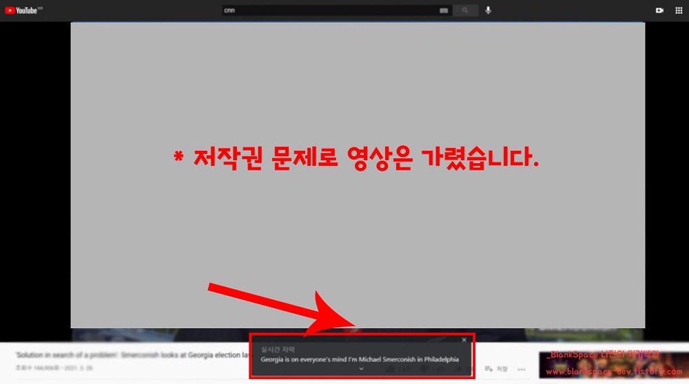 먼저, 유튜브의 한 영상을 재생해봤습니다. 아래처럼 영상이 재생되면서, 아래 실시간 자막이 표시되는 것을 확인할 수 있었습니다.