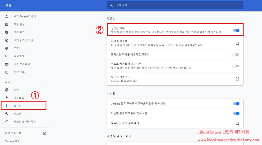 그중, 실시간 자막 부분을 활성화해주세요. 활성화를 하면, 자막 관련 파일을 다운로드할 것입니다. 다운로드 진행을 기다려주세요.