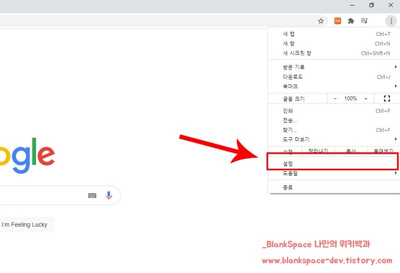 그런 후, 오른쪽 상단에 점 세 개 부분이 있습니다. 이 부분을 누른 후, 이미지처럼 설정 부분을 눌러주세요.