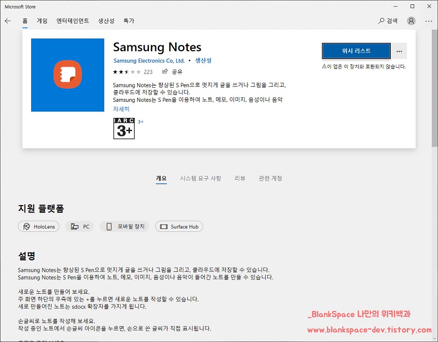 당연히 윈도우 10 PC에서 삼성 노트(SAMSUNG NOTES) 앱을 사용할 수 있으리라 생각할 텐데요.