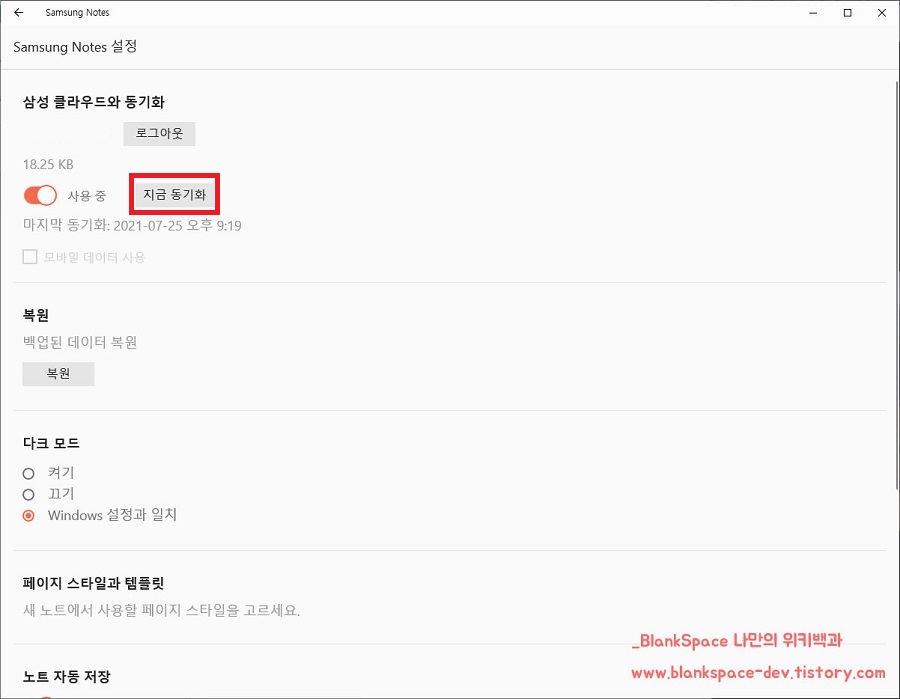 그런 후, 아래처럼 지금 동기화 버튼을 눌러주시면 될 거예요.