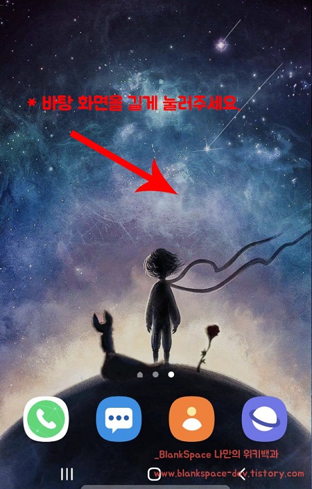 먼저 아래처럼 스마트폰의 바탕화면으로 이동해주세요. 그리고 바탕화면을 길게 눌러주세요.