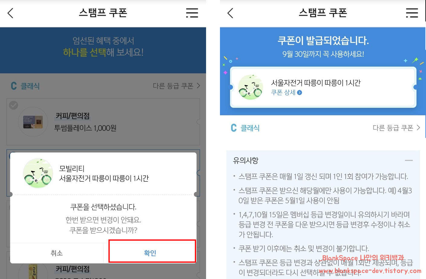 아래 이미지만 보면, 3개월간 일일 2시간을 이용할 수 있는 것처럼 보이는데요. 사실은 3개월 유효기간일 뿐이고, 한번 사용하면 끝나는 쿠폰이라고 생각하시면 될 것 같아요. 그러니, 갑자기 따릉이를 사용하실 필요가 있는 분들에게는 꿀혜택이라고 생각이 드네요.