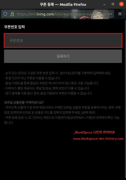 그럼 아래처럼 쿠폰 등록 창이 열립니다.